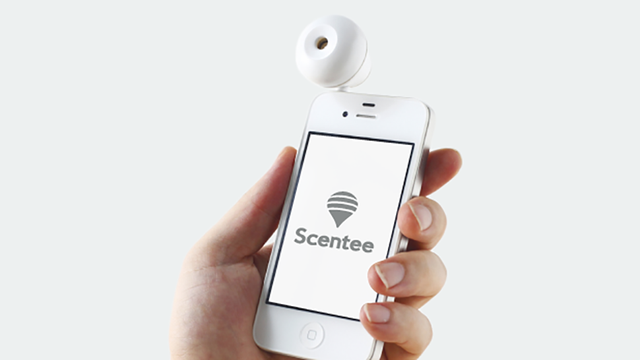 Scentee is a small dongle that attaches to your smartphone and emits scents depending on your choosing. The first incarnation of this bizarre mobile phone accessory has a scent cartridge inside which holds enough liquid for 100 or so sprays.